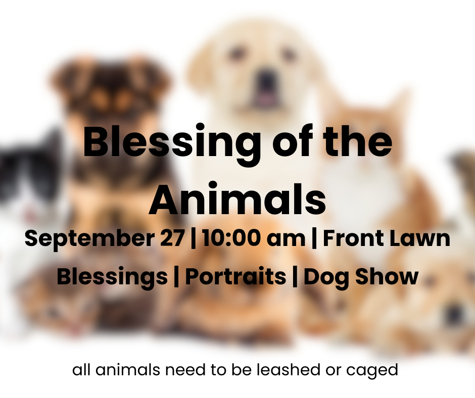 Bring your favorite pet, a picture of your pet, or a favorite stuffie to be blessed on Saturday, September 27 at 10:00 a.m. In addition to pet blessings, we will have treats, a photographer to take pictures with your pet, and end the morning with a dog show. Animals need to be caged or leashed. We will be accepting donation of dry cat or dog food at the event for distribution at the St. Matthew’s Food Pantry.