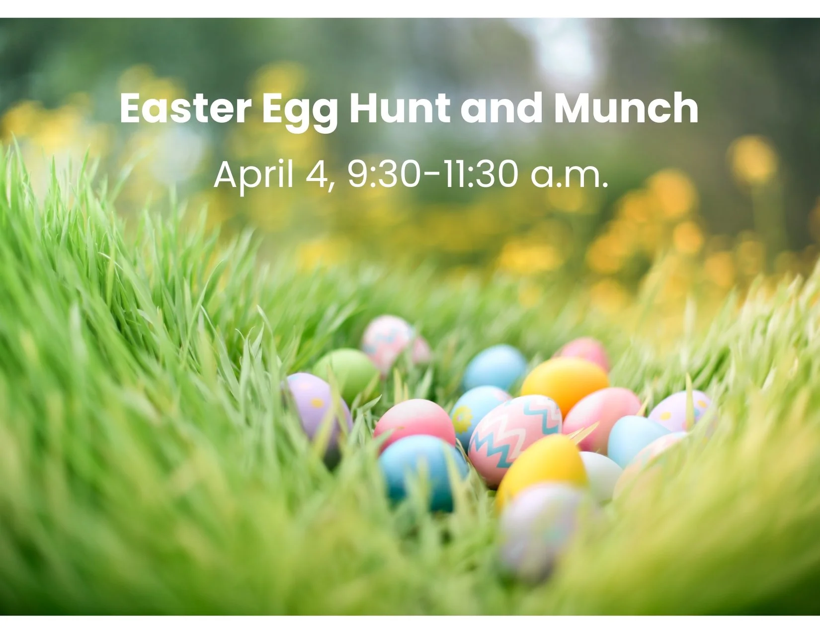Easter Egg Hunt and Munch Saturday, April 4, 2026 9:30 AM 11:30 AM Google Calendar ICS Beginning at 9:30 a.m., join the CFE committee for a community Easter Egg Hunt at Valley Church! Snacks will be served and fun will be had at this joy-filled event!